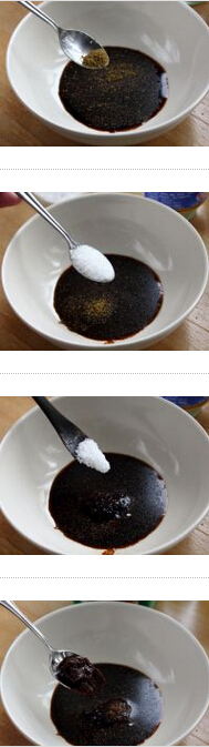 3.取一潔凈的空碗,加入生抽和老抽各一湯勺。