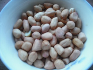 5 花生米去皮用油炸好;