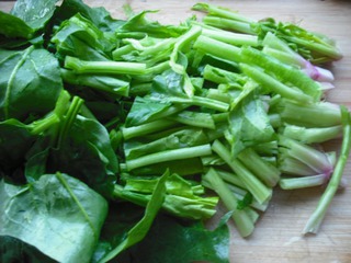 2 菠菜切段;