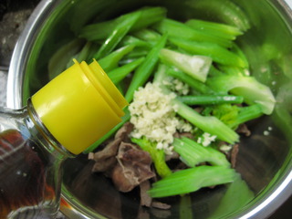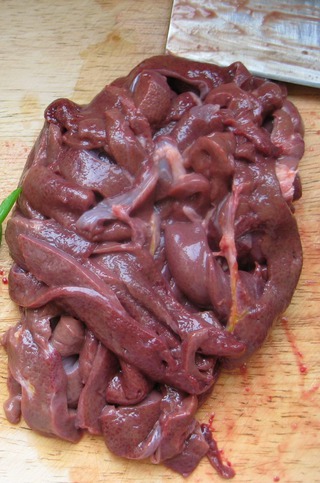 主料鮮豬肝(300克)芹菜(1顆)調(diào)料香油(2茶勺)醬油(2大勺)蒜末(1大勺)醋(1大勺)料酒(2大勺)鹽(1茶勺)小紅辣椒(2個(gè))廚具無(wú)