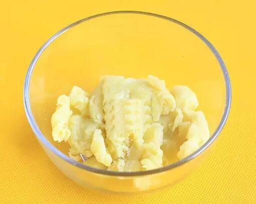 2、將蒸好的土豆碾成泥,豆與西蘭花攪勻,捏成球狀即可上盤。