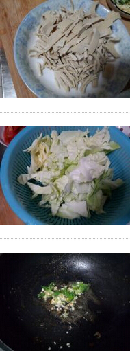 1.豆腐絲洗凈直接切成段,小半個(gè)包菜切塊