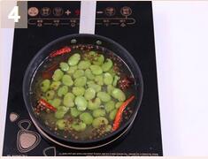 茴香蠶豆的材料:蠶豆500克,八角1枚,花椒1克,干辣椒3支,桂皮1小段,鹽1茶匙(5g)水1000ml