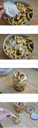 腌制芽的材料:嫩姜芽500克,精鹽50克,白糖50克,白酒醬油辣椒花椒50克,大蒜