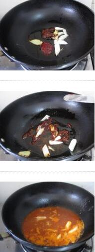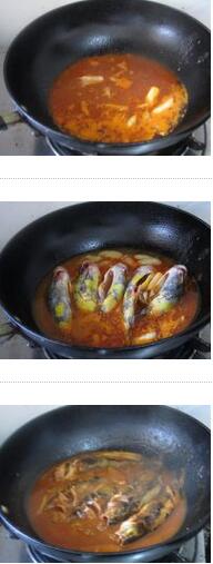 2.坐鍋倒油燒熱,放蔥姜爆香后加入一勺豆瓣醬和一勺辣醬煸炒均勻,炒出醬香味后加入清水燒開(kāi)后放入醋、糖、鹽后加入嘎魚(yú),大火燒開(kāi)后,轉(zhuǎn)中小火燉至20分鐘,收干湯汁就好了的做法