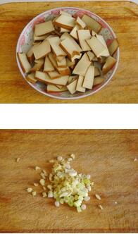 1.把香干洗凈切成片,蔥姜蒜分別切末。