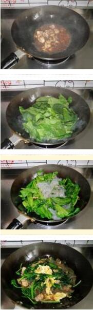 菠菜炒粉皮的材料:粉皮,雞蛋,菠菜,蒜末,醬油,鹽,雞精,蠔油