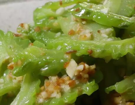 蒜蓉拌苦瓜的材料:苦瓜、蔥油、鹽、鮮蒜泥、炸蒜泥