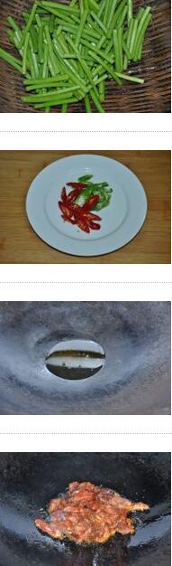 蒜苔炒肉的材料:蒜苔250克,肉絲200克,青紅辣椒30克,生粉,生20克,老抽,食鹽