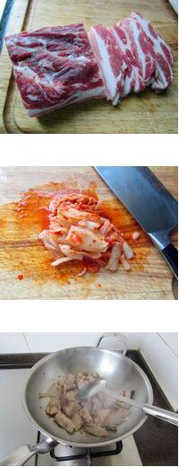 辣白菜炒五花肉的做法: