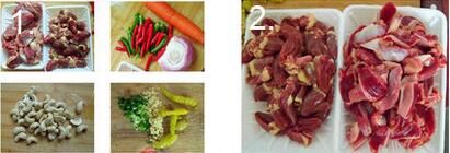 辣炒雞雜的材料:雞胗 、雞心洋蔥 、胡蘿卜 、青紅尖椒、腰果 、蔥、泡椒,鹽、十三香、生抽、料酒、糖、鹽、味精、香油、香。