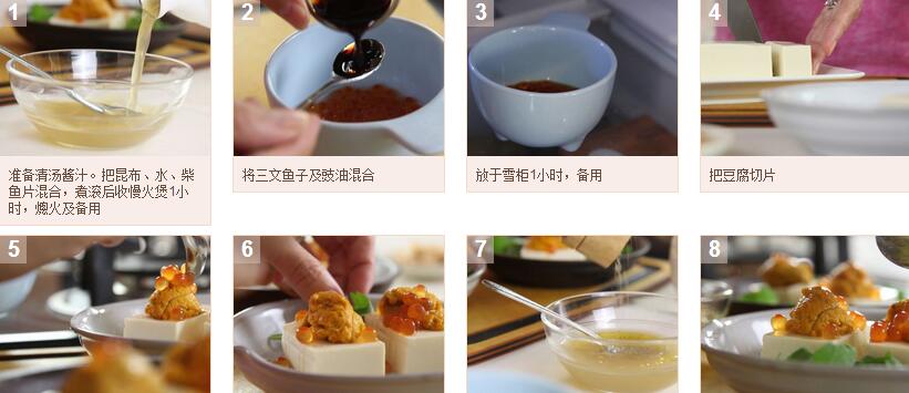 海膽凍豆腐配清酒三文魚籽的做法視頻