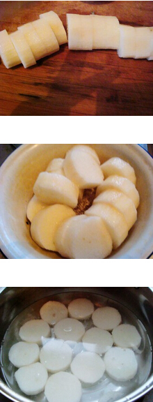 2.鍋里放水,開鍋放入山藥,用熱水煮15分鐘,盛入盤中。