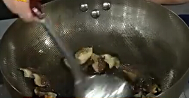 3. 將鹽與糖按2:1的比例撒到鍋中調(diào)味