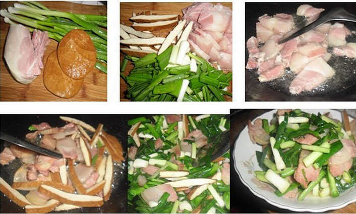 青蒜咸肉炒干子的材料:咸肉,青蒜,香干,鹽