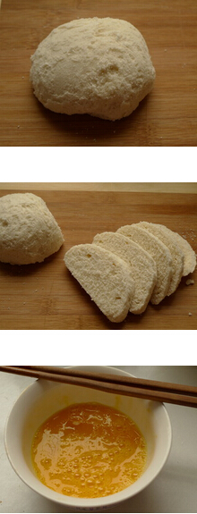 香煎饅頭片的材料:剩饅頭 (兩個(gè)) 雞蛋 (兩只) 鹽,色拉油,