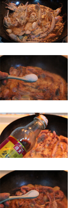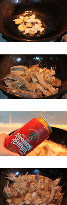 6 倒入洗好的皮皮蝦,均勻翻炒片刻 7 倒入黑啤 8 水里以沒過皮皮蝦為標(biāo)準(zhǔn) 9 依個(gè)人口味加入鹽 10 加入適量生抽 11 加入少許糖,大火燜煮5分鐘即可撈出
