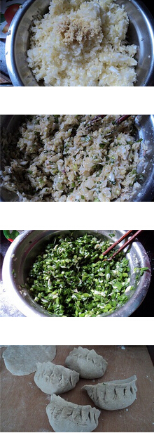 燙面包子的材料:面粉,地瓜粉,大白菜,韭菜,蝦皮,蔥,姜