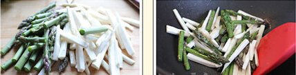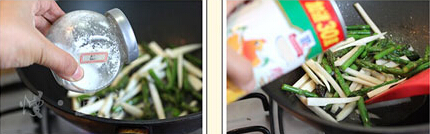 2 等蘆筍炒軟后放入鹽;臨盛盤前放入雞粉。