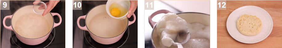 5. 于鍋內注入2/3水,加入白醋,煮至水滾開,然后將火調至中低火慢慢滾。把雞蛋打入小碗內,慢慢將雞蛋倒進水中(每次制作一只雞蛋)