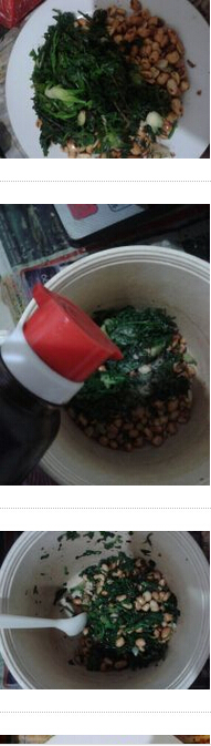 3.把這兩樣放在一起倒入一個(gè)大碗內(nèi),加入鹽糖醋或生抽,充份拌均