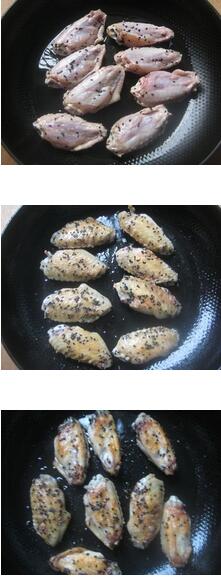 1.洗凈雞中翅,瀝干,或用廚房紙巾吸干水分,雞翅加鹽,胡椒粉,孜然粉拌勻,腌制一小時。(時間久點更好,更入味。),再放黑芝麻拌勻。