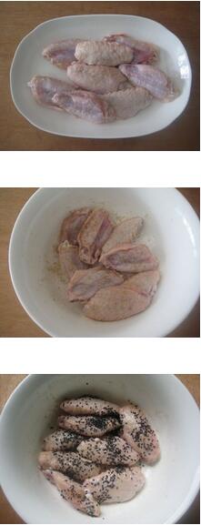 土匪雞翼(雞翅)的材料:雞中翅,黑芝麻,鹽,胡椒粉,孜然