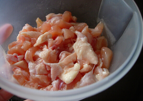 1、雞肉洗凈切成小丁,