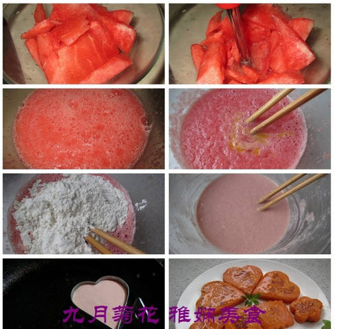 原料:西瓜、雞蛋、面粉、食用油、蜂蜜