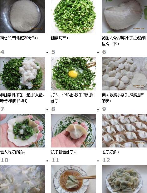 鱈魚韭菜餃子的材料:韭菜200g,鱈魚一塊,雞蛋一個(gè),花生油,鹽,味精一點(diǎn),面粉250g