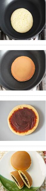 紅豆銅鑼燒的材料:全蛋110克,低筋面粉120克,牛奶45克,紅豆沙180克,細(xì)砂糖85克,蜂蜜5克,泡打粉1克,黃油12克