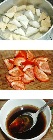 三杯豆腐的材料:豆腐,紅柿子椒,鮮羅勒