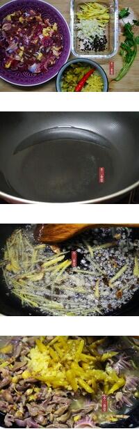 1.雞珍,雞心切片,姜切絲,蒜切末,泡椒切絲,泡姜切末,小米椒切圈,香菜切末