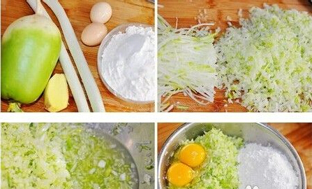干炸蘿卜丸子的材料:青蘿卜1個、雞蛋2個、大蔥白2根、普通面粉、鹽、十三香、植物油各適量。