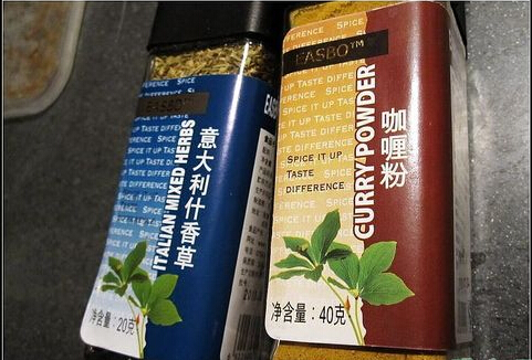 6.電飯煲通電,選擇煮飯按鈕,等電飯煲自動跳摯,打開就做好了,最后將完成的牛肉干,放入保鮮盒,加入咖喱粉、香草,搖晃多次,讓調(diào)料混合均勻。
