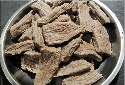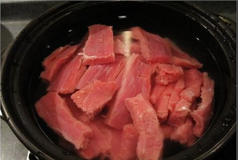 3.水煮滾后,關(guān)火,倒出牛肉,用冷水清洗干凈。