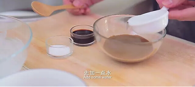 2.粉皮切小塊,入滾水中氽燙片刻,撈出拌入少許麻油及鹽,待涼。剩余的調(diào)味料拌勻。