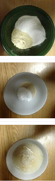 1.將3份面粉,1份黃豆粉,1份蕎麥粉混合均勻