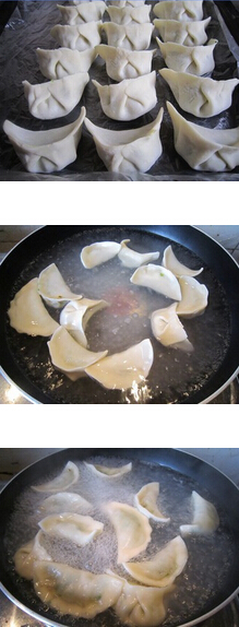 8 鍋內(nèi)水燒開,下入包好的餃子。