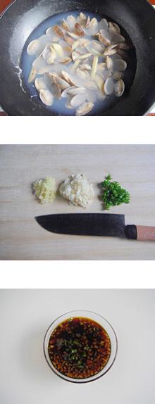 白灼花蛤的材料:花蛤 (300克),生 (少許) 蒜瓣 (少許) 蔥 (少許) 生抽 (一湯勺) 白糖 (1/2茶勺) (1湯勺) 香油 (少許) 蠔油 (一點(diǎn)點(diǎn))