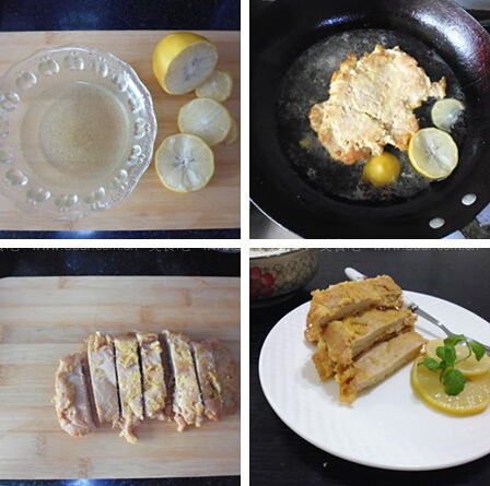 檸檬雞排的材料:雞胸肉,檸檬,鹽、生抽、黃酒、胡椒粉、姜片、雞蛋、白醋、糖、檸檬汁