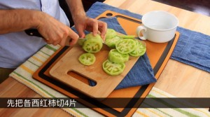 先把各西紅柿切4片