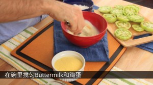 在碗里攪勻Buttermilk和雞蛋