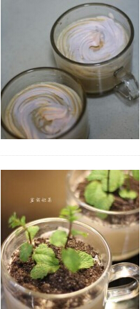 盆栽奶茶的材料:奧利奧餅干少許,奶油少許,薄荷葉,白糖,牛奶,茶包