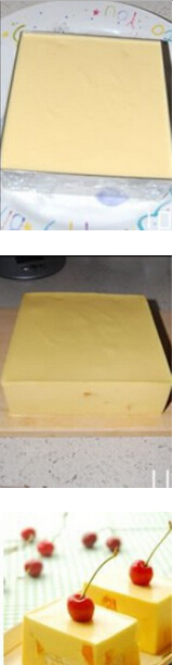 7.脫模后的慕斯。脫??梢杂秒姶碉L(fēng)吹慕斯圈的四圈,或用熱毛巾捂,慕斯切塊裝盤