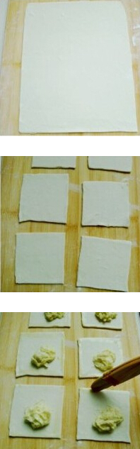 榴蓮酥的材料:榴蓮肉一塊,飛餅皮三張,雞蛋液