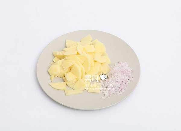 1、土豆切片、洋蔥切丁備用。