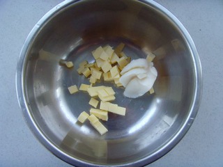 7 將黃油切成小塊,與豬油室溫下軟化。