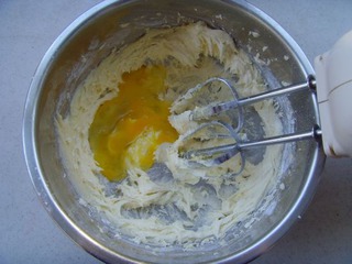 9 將雞蛋打勻,分次加入粉盆中,打勻。