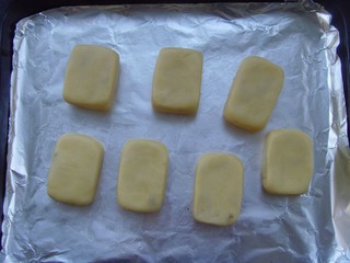 15 擺入烤盤中,用手輕輕按壓,整理成長方塊。
